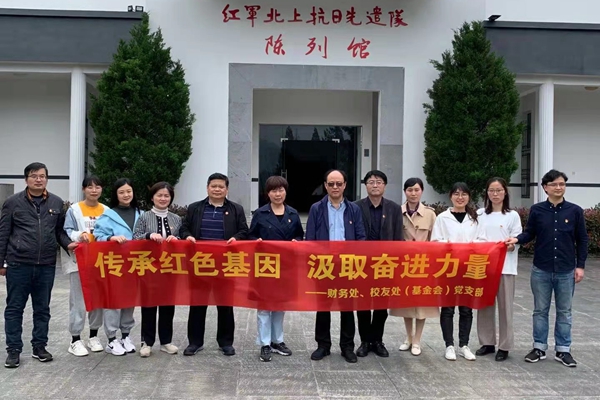 为庆祝中国共产党成立100周年,回顾党的艰苦奋斗历程,扎实开展党史学习教育,4月24日上午,校友处(基金会)党支部联合财务处党支部组织党员和群众职工赴黄山红军北上抗日先遣队纪念馆开展“传承红色基因,汲取奋进力量”党史学习教育主题党日活动。