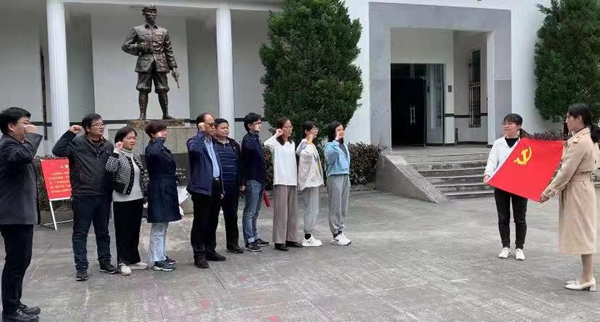 在庄严肃穆的纪念馆内,大家认真聆听了纪念馆馆长对红军北上抗日先遣队英勇作战事迹的深情讲述,尤其是革命烈士寻淮洲,他是红军历史上最年轻的军团长,不幸在谭家桥战斗中壮烈牺牲。党员们仔细端详陈列在馆内的历史文物和资料图片,包括抗日先遣队战士曾用过的生活用品、战斗武器和信件等,无不感受到谭家桥战役的壮烈和红军英雄的精神风貌,深刻体会革命先辈们为了新中国的解放而作出的巨大牺牲。最后,全体党员在寻淮洲烈士雕像前面对鲜红的党旗,举起右手握拳宣誓,重温了入党誓词。