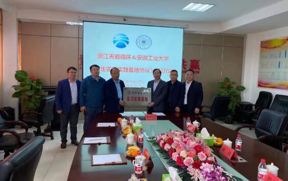 王海川介绍了学院发展历史、专业设置、师资队伍、学生培养等基本情况。天能资源副总裁曹稳介绍了企业的生产现状、技术瓶颈、发展规划及人才需求情况。双方就产学研合作、学生就业及实习基地建设等具体事项进行了探讨,达成了初步的合作意向。王海川代表学校与曹稳签订了资源循环科学与工程专业“实习实践合作基地建设协议”,并共同为安徽工业大学“实习实践基地”揭牌。会后,在企业负责人的陪同下,一行人参观了企业的发展历史馆以及生产车间。