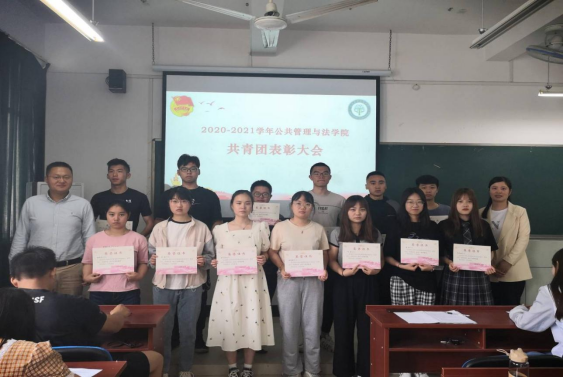 5月27日,公共管理与法学院在东区汇文楼C302举行了2020-2021学年共青团表彰大会。院团委书记邢维迢老师、学生第二党支部副书记朱玲老师、校级优团优干代表、校五四红旗团支部班级代表参加。