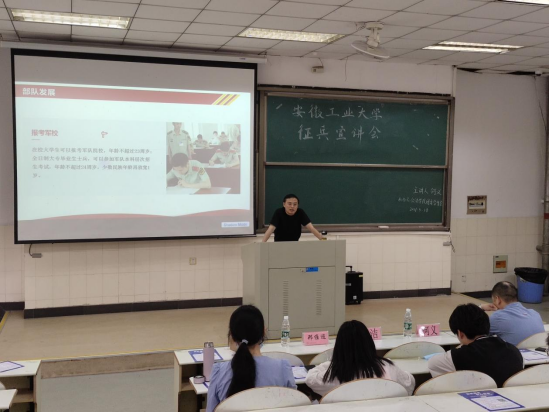 何义指出,参军能够帮助同学们锻炼身体、强健体魄、磨炼意志力,提升克服困难的能力。从更深层次来讲,参军有利于帮助同学们明确奋斗目标,实现自我价值。同时,参军是提升个人职业素养的有效途径,能够帮助同学们更好的适应未来职场。他讲述了征兵在考研、就业、经济保障等方面的相关优惠政策,并就征兵条件、未来发展等相关问题与同学们进行了交流。