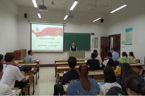 计梦圆同学则介绍家乡在脱贫攻坚、美丽乡村建设、群众文化方面发生的巨大变化。梅庆染同学将目光放在了国庆期间仍在默默守护岗位的环卫工人、医护工作者、警察的伟岸身影上,他感慨到;岁月静好、生活幸福,是总有人在背后辛勤付出。党员王克珩说到:今年喜迎国庆,那一抹“中国红”尤其显得靓丽,让我激动不已,如果信念有颜色,那一定是中国红。”同学们纷纷结合自己国庆期间的所见、所闻分享了自己的心得与感悟。