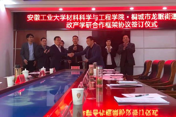 会上,材料学院院长柳东明与龙眠街道办事处主任张神舟签订了《安徽工业大学材料科学与工程学院•桐城市龙眠街道办事处政产学研合作框架协议》。出席签约仪式的各方嘉宾还听取了桐城市龙眠街道经济社会发展情况、材料科学与工程学院特色专业与科研发展情况等介绍。