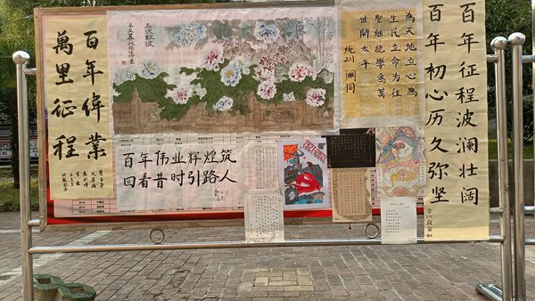 为庆祝中国共产党百年华诞,继承和弘扬中华优秀传统文化,展现学生书画艺术风采,10月25日,商学院在秀山校区第六食堂前广场举办了“赞百年风华,颂盛世伟业”书画大赛。