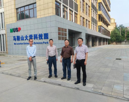 5月23日下午,市经开区经发局局长方强、办公室副主任孙海舟、招商二局副局长亓玉国调研马鞍山大学科技园,安徽工业大学科技园管理办公室主任王小林等陪同调研。