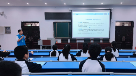 我校第23届研究生支教团成员恽郑曦以“核”为切入点,引导学生进一步了解我国核工业的起源,带领学生一起感受我国原子弹、核潜艇等“国之重器”研制的艰辛历程,体会彭士禄“只要祖国需要,我愿意贡献一切”的伟大奉献精神。陈晓君以辐射为主题展开科普宣讲,通过理论宣讲和具体数据分析,让学生们科学地认识到了辐射在生活中无处不在,并且在工业、农业、医学等领域得到了广泛应用。