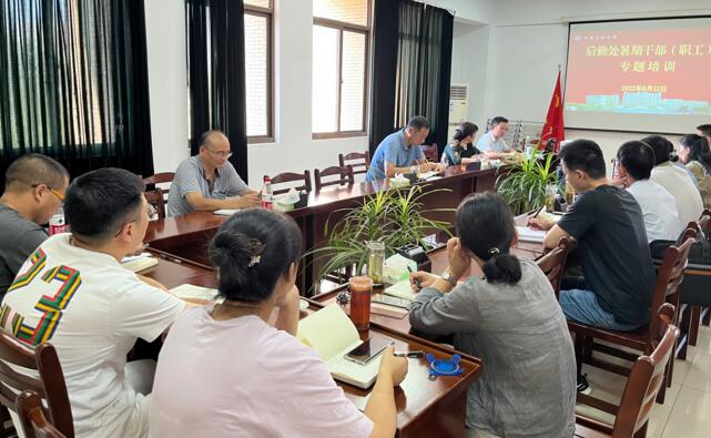 为了提高后勤干部职工管理能力和综合素养,8月22—23日后勤处开展暑期集中培训暨秋季开学工作部署会,后勤处领导班子成员、中心主任、党支部书记和骨干人员参加了会议。