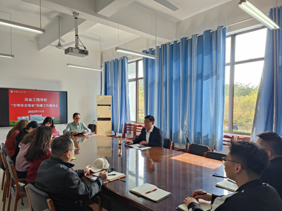 11月4日,冶金工程学院于秀山校区冶金楼南324会议室召开会文明安全宿舍创建工作推进会。院党委副书记、副院长杨建及学院全体辅导员参加了此次会议,会议由杨建主持。