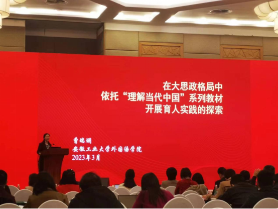 曹瑞斓着重介绍了在本次大会上作为安徽省高校落实“三进”工作的先进典型——安徽工业大学在教育主管部门和安徽省外国语言文学学会的领导和指导下,开展“理解当代中国”系列教材育人实践工作的亮点、特色和突出成果。她指出,新时代,高校人才培养工作要站在党和国家事业发展全局的高度,聚焦青年人才的成长成才,创新教育理念、教育内容和教育模式。“理解当代中国”系列教材为高校开展青年人才培养搭建了一个纵向有高度、横向有延展度的真实、立体的育人实践平台。安徽工业大学依托“理解当代中国”系列教材的使用,在全员、全过程、全方位育人的格局中,在推进立德树人的工作中,持续探索一体化领导、专业化运行和协同化育人的实践。报告受到了线上线下参加论坛的全国各地外语教育专家和教师的好评。多所高校外语院系希望今后有机会给予更多分享和交流,以期帮助促进相关院校在“理解当代中国”系列教材“三进”工作中的落实成效。