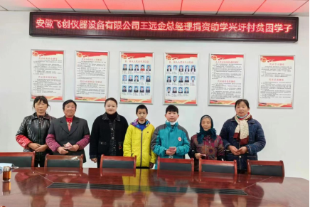 3月25日上午,“安徽飞创仪器设备有限公司王远金总经理捐资助学兴圩村贫困学子”仪式在兴圩村举行,6名儿童共收到价值5200元的爱心助学金。