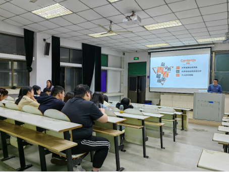 5月24日晚上,经济学专业2009届校友、维苏威铸造科技(江苏)有限公司销售经理李领作了题为“浅谈大学生就业”的讲座。李领首先分享自己求学与求职的经历,然后从大学生就业难现象、学生就业难原因分析与个人应对措施等方面与同学进行了充分的交流。李领对同学们的就业选择给出了建议,希望同学们在择业时不能盲目跟随他人,必须清晰知道自己未来的目标,根据自己的目标做出合适自己的选择。