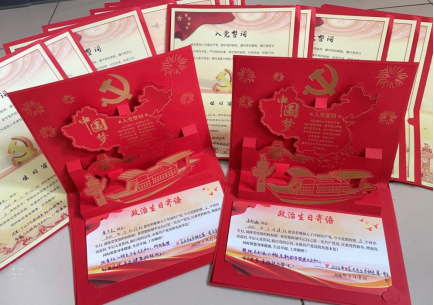 活动上,支部书记向党员们一一赠送了“政治生日”贺卡。贺卡内页记录了每位党员的入党时间,并印写着对党员的祝福和期盼——“心有所信,方能行远。希望牢记入党誓词,增强党员意识,践行党的宗旨,永葆共产党员先进本色,在学思践悟中坚定理想信念,在奋发有为中践行初心使命!”。一封封贺卡,传递着温暖,也承载着沉甸甸的责任。期间,支委还带领毕业班党员们重温入党誓词,一字一句,重温入党时的志愿,牢记入党时的初心。