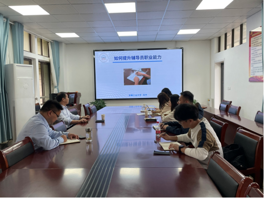 为进一步提升学院全体辅导员的学生工作素质能力,进一步加强学院辅导员队伍建设,10月9日,能源与环境学院组织召开辅导员素质能力提升专题培训报告会。能源与环境学院组织员凤杰以“如何提升辅导员职业能力”为题作了专题培训。院党委副书记、副院长卫军帅主持会议。全体辅导员参会。