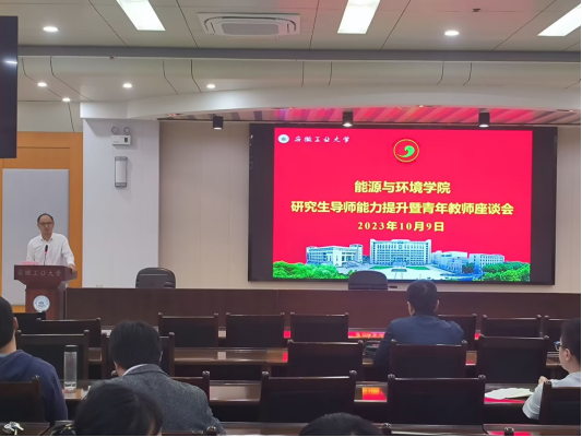 10月9日,能源与环境学院在学术会议中心二楼报告厅召开研究生导师能力提升暨青年教师座谈会。院领导、全体研究生导师、青年教师参加。科研副院长楚化强主持会议。