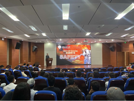 10月16日下午,学院召开全体留学生安全教育大会。会上,辅导员张侃敏着重强调了宿舍安全用电规范,普及消防知识和常见灭火方式。会上还介绍了中国交通安全法律法规,要求学生驾驶电动自行车时正确佩戴头盔,骑车不超速不抢道,注意行车安全。