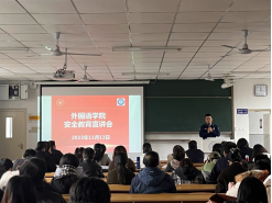 11月13日下午,外国语学院在教一420召开安全教育宣讲会。马鞍山市消防救援支队防火监督科科长朱磊和花山公安分局反电诈中心负责人王勇警官应邀主讲。会议由学院党委书记夏玉钦主持,全院教师和和各年级各班级学生代表参加会议。