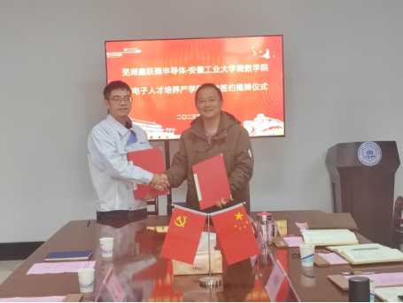 11月22日下午,芜湖鑫跃微半导体有限公司江亮总经理一行来学院开展微电子人才培养产学研基地签约和公司招聘宣讲。学院党委书记汪春胜,副院长杨二光,副书记、纪委书记、副院长张敏,以及微电子系专业教师代表参加活动,签约仪式及交流会由唐绪兵主持。