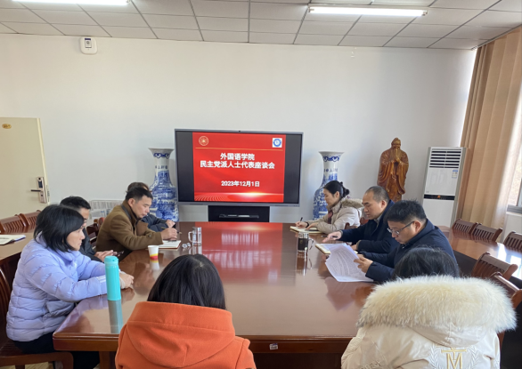 为进一步加强与民主党派教师的沟通联系,充分发挥民主党派教师在学院建设发展中的重要作用,12月1日下午,外国语学院召开了民主党派教师代表座谈会。学院党委书记夏玉钦、院长曹瑞斓、党委副书记、副院长施铜兴和民主党派教师代表参加了此次会议。