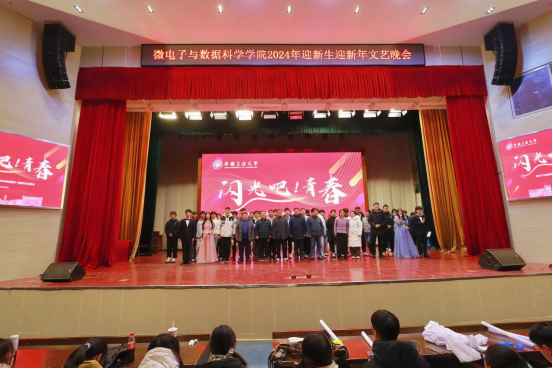 12月18日晚,微电子与数据科学学院在秀山校区新大学生活动中心举办2024年“迎新生·迎新年”文艺晚会。学生工作部(处)部(处)长、就业创业指导中心主任赵龙,创新教育学院直属党支部书记、院长黄仙山,微数学院领导班子、系室主任、班主任代表、辅导员以及2023级全体新生参加。