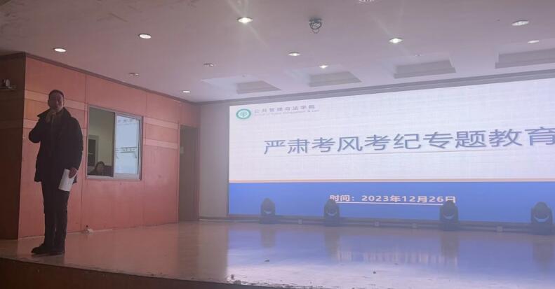 12月26日晚,公法学院在本部大学生活动中心召开了严肃考风考纪专题教育会。会议由学院党委副书记、学生工作副院长周浩然主讲。全体辅导员和各年级同学们参加会议。
