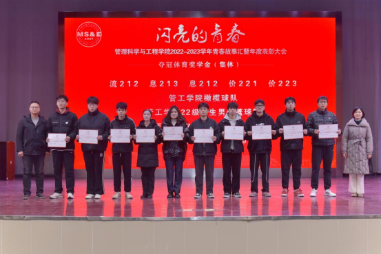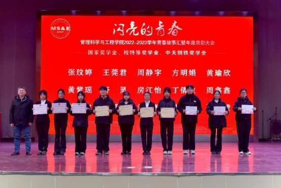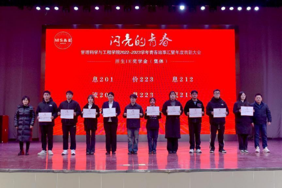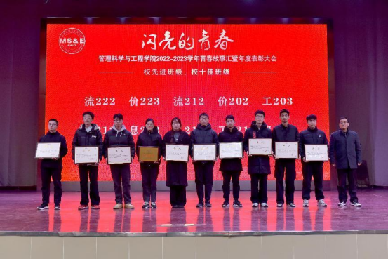 表彰环节在庄严的国歌声中拉开序幕。管理科学与工程学院院长汪和平宣读了《关于表彰管理科学与工程学院2022-2023学年先进集体和先进个人的决定》,与会领导为获得夺冠体育奖学金、照生IE奖学金、国家奖学金、国家励志奖学金、校特等奖学金、中天奖学金、校优秀学生干部、校三好学生标兵、校三好学生、校社会工作优秀学生、校文体优秀学生、校精神文明先进个人、校社会实践先进个人、校学风优良宿舍、校文明宿舍、校十佳班级、校先进班级等先进集体、先进个人颁发荣誉证书。