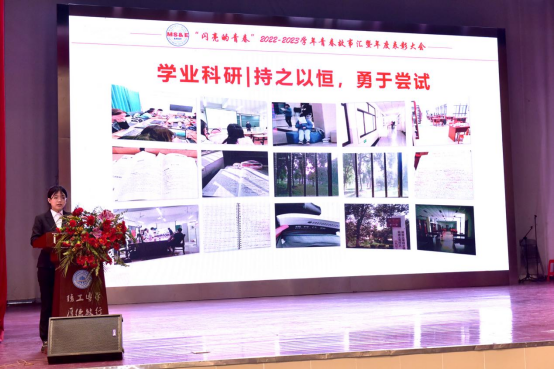聚焦卓越与优秀,学习榜样树先锋。全国无偿捐献造血干细胞奉献奖获得者2020届校友代表操礼春分享了自己求学之旅以及捐献造血干细胞的经历,鼓励学弟学妹们,牢记习近平总书记的殷殷嘱托,在以中国式现代化全面推进中华民族伟大复兴的征程中坚定理想信念,厚植家国情怀。校第26届研究生支教团团长物流203班李嘉懿分享了自己的大学时光及成长中的突破与磨砺;第18届挑战杯国家一等奖获得者造价202班邓祖星、物流202班陈磊享了彼此成长进步路上的点滴故事,向大家讲述了获奖的经验;国家奖学金获得者物流202班王莞君从学业科研、学生工作、生活、志愿实践四个方面展示了自己的保研经历;校“十佳班级”获得者造价213班许谨、田健向大家讲述了班级的发展与建设成果。