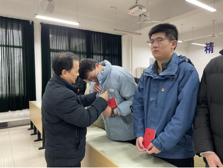 宣誓仪式在庄严的《国际歌》中拉开帷幕。张敏宣读学院党委关于党员发展和转正的批复。面向鲜红的党旗,全体新党员和老党员起立,在微电子本科生党支部书记张佳良的领誓下,举起右手,庄严宣誓,表达对党的忠诚、为共产主义事业奋斗终生的决心。随后,汪春胜、张敏以及各支部书记一一为新党员佩戴党员徽章。光电工程系党支部、教师许瑞醒作为新党员代表发言,表达了光荣入党的激动心情和锐意进取、无私奉献的决心。微电子本科生党支部、微C211班学生张超作为老党员代表发言,表达了对新党员的祝贺、回顾了入党的初心、提出了发挥模范作用的期冀。