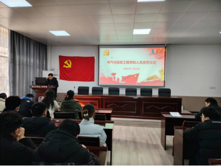 1月4日中午,电气学院在电气楼113教室举行新党员入党宣誓仪式。院党委副书记、纪委书记、副院长李克明、各学生党支部书记、各年级辅导员、2023年12月新发展的党员以及全体学生党员参加了仪式。