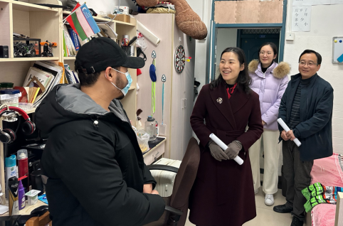 走访中,曹瑞斓与留学生们进行了亲切交流,详细询问了留学生的日常生活、期末考试进度和寒假规划等方面情况,勉励留学生要珍惜时光,合理规划,不断提高自身的学习能力和专业素质。她还鼓励留学生们利用假期努力学习中文,感受中国文化,把他们眼中真实、立体、全面的中国,介绍给家人和朋友,做中外友好交流的使者。