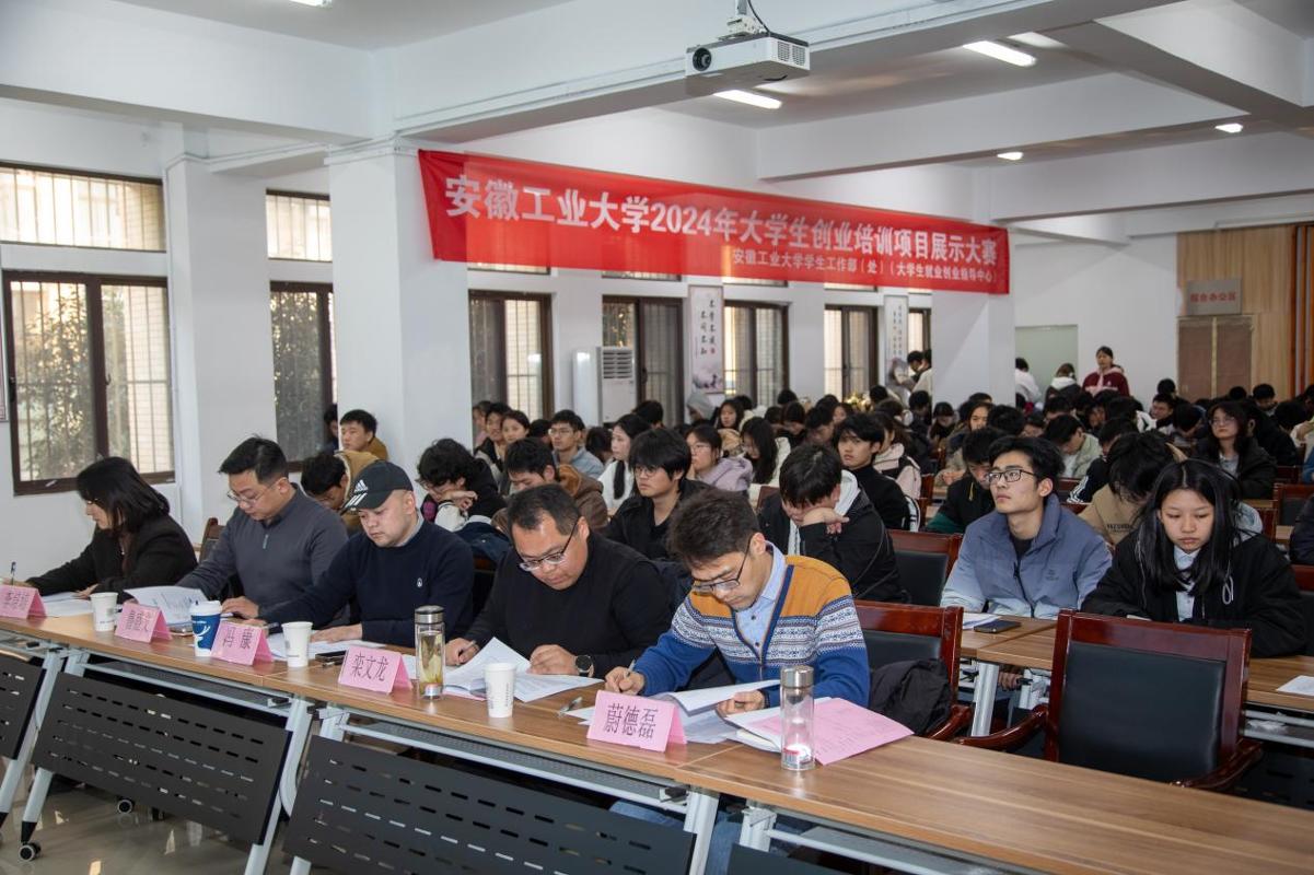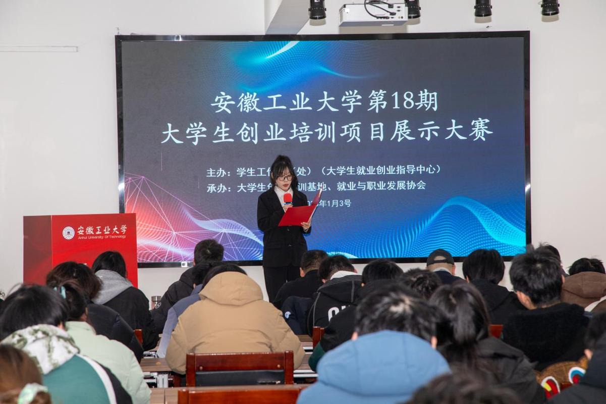 1月3日,我校于秀山校区开展了第18期大学生创业培训项目展示大赛,本次比赛由学工部(大学生就业创业指导中心)主办,就业与职业发展协会承办,旨在培养大学生创新思维,提升创业实践能力,皖江工学院、华江创业大学、蒙牛高科等单位领导和专家担任评委。学工部副部(处)长、就业指导中心副主任赵传刚,各培训班级授课教师、创业团队成员及就业创业协会学生,感兴趣的师生等120余人参加。