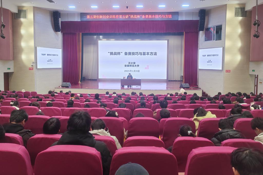 1月3日下午,创新创业训练营第五讲在秀山校区大学生活动中心顺利举行,此次讲座吸引了500多名对挑战杯竞赛感兴趣的同学参与,现场气氛热烈。本次讲座邀请了挑战杯国赛特等奖指导老师汪小棠主讲,为同学们带来一场题为“‘挑战杯’备赛基本技巧与方法”的知识盛宴。
