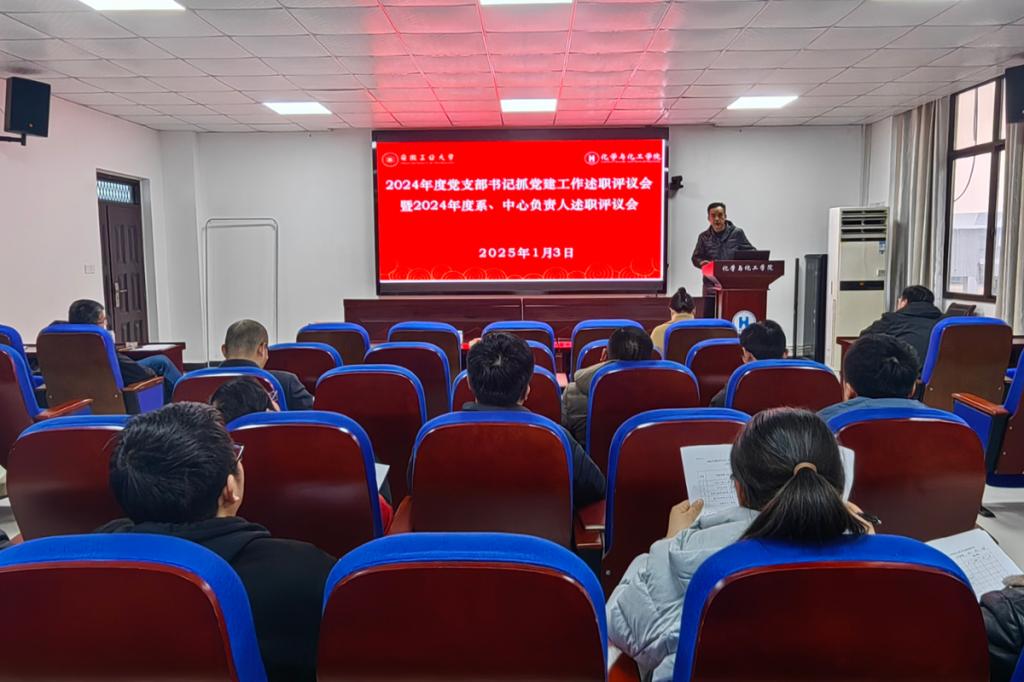 为全面贯彻落实习近平总书记关于党的建设的重要思想,进一步加强基层组织建设,提升系(中心)管理水平,1月3日,化学与化工学院在化工楼南207报告厅召开2024年度党支部书记抓党建工作述职评议会暨2024年度各系、中心负责人述职评议会。学院领导班子成员、党委委员、纪委委员、全体党支部书记、系(中心)主任、科级干部、教师代表等参加述职评议会,会议由学院党委副书记、纪委书记、副院长冀秀芝主持。