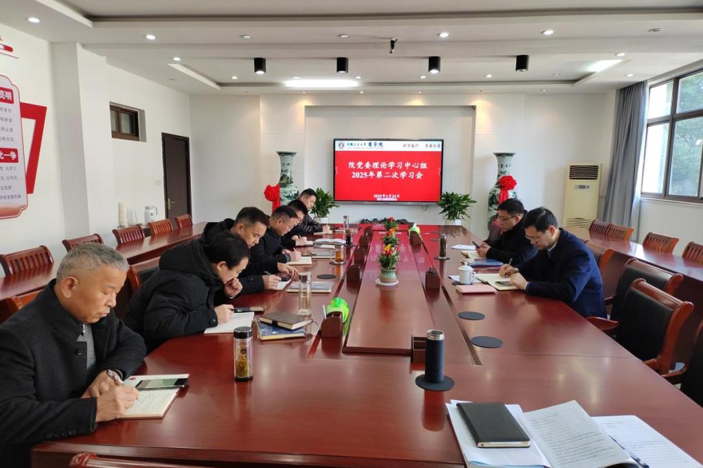 2月24日上午,商学院党委理论学习中心组召开2025年第二次学习会,院党委理论学习中心组全体成员参加会议。会议由院党委书记杜飞主持。