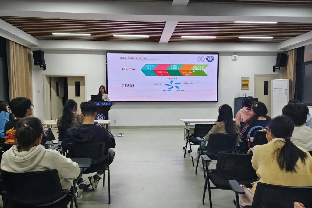 为深入宣传国家资助政策,发挥榜样引领作用,3月20日晚,外国语学院举办“‘语’你同行·扶志育才”主题宣讲活动。活动由辅导员张庆芳主持,国家奖学金获得者翁雅苹、国家励志奖学金获得者桂思宇担任主讲,结合2024年资助政策调整要点,为百余名学生解读政策、分享成长经验,助力他们规划学业发展。