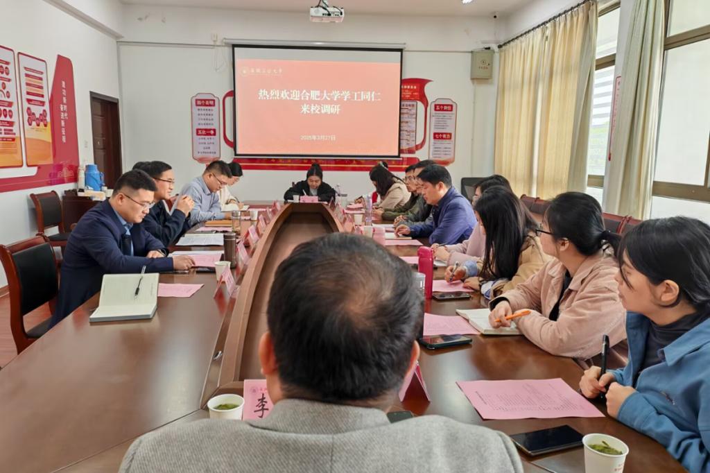 张应杰简要介绍了合肥大学辅导员队伍建设、辅导员名师工作室建设情况,对本次调研会的开展和学校的热情接待表示感谢。希望以此为契机,学习借鉴安徽工业大学辅导员队伍建设、辅导员名师工作室、团学工作等方面的经验做法,深化校际交流与合作,实现互学互鉴、互促互进。(撰稿:苏蔚 审核:赵龙 林颖)