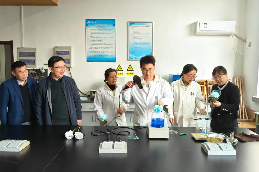 在无机化学实验室,调研组特别驻足观摩了师生共同开展的创新兴趣实验。韩新亚高度肯定此类实践:“将专业实验与科创项目有机融合,既彰显化学学科特色魅力,又通过‘沉浸式’教学有效激发学生探索热情。”他特别强调,要系统规划兴趣实验课程体系,通过“基础实验+创新模块”的梯度培养模式,持续提升学生自主探究能力和工程实践素养。