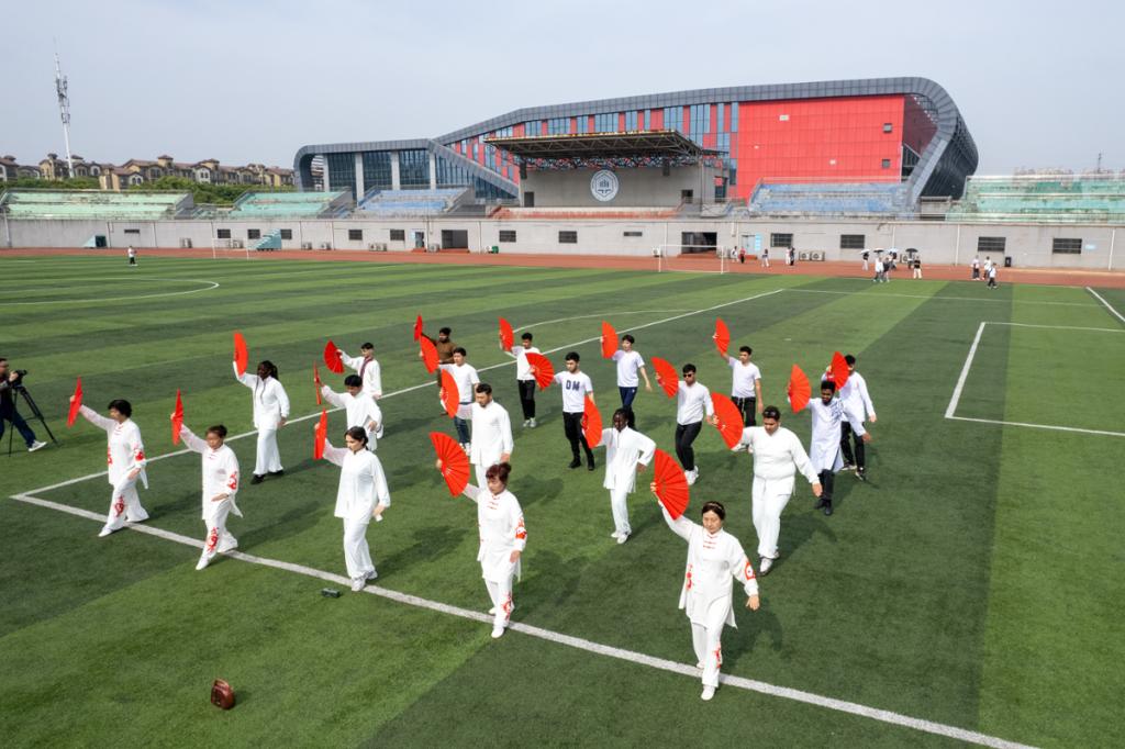 4月11日,国际教育学院联合体育部、马鞍山武术协会,以“刚柔并济传文化,龙腾四海连世界”为主题,组织250名中外学子开展了一场别开生面的中华传统文化沉浸式体验活动。通过舞龙、太极扇、太极拳等多元文化项目,以及动感十足的团队舞蹈,架起中外学子跨文化沟通的桥梁。