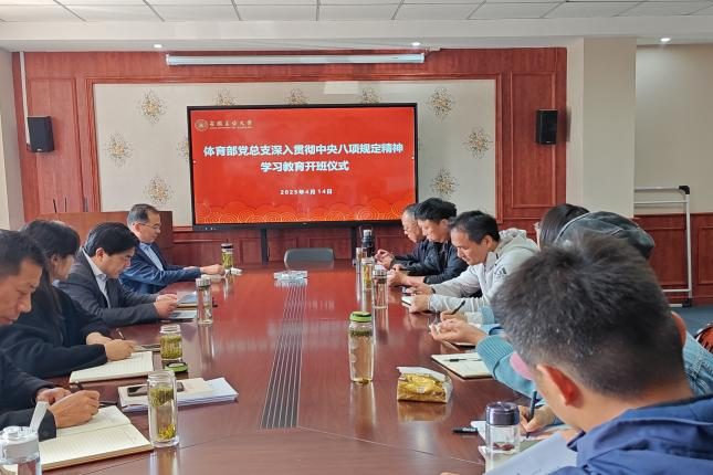 4月14日上午,体育部在体育馆133会议室召开党总支理论学习中心组2025年第六次学习(扩大)会议,同时举行了深入贯彻中央八项规定精神学习教育专题读书班开班仪式。部党总支理论学习中心组成员、党支部书记、系(室)中心主任、科级干部、工会主席参加了会议,党总支副书记李克明主持会议。