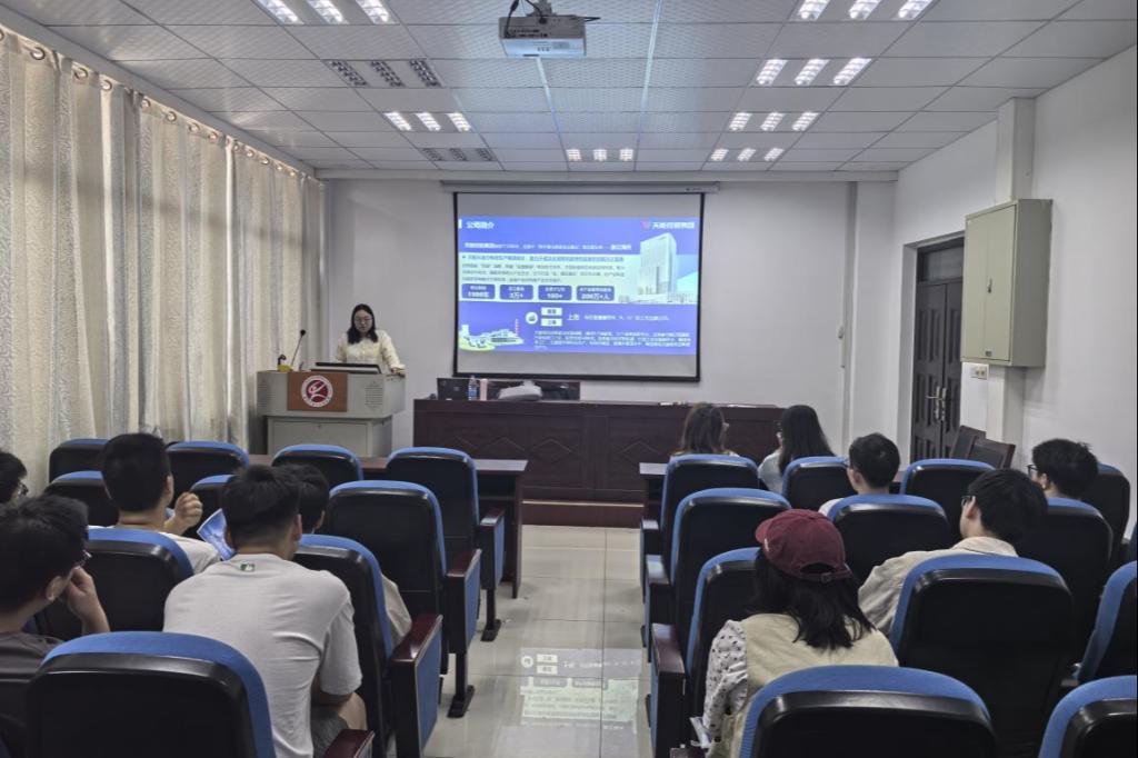 宣讲会上,天能集团人力资源部门负责人通过PPT展示,全面介绍了集团的发展历程、核心业务、企业文化及人才需求。宣讲内容紧密结合材料学科特色,重点解析了新能源材料、电池技术等领域的岗位需求,为学生们提供了清晰的职业发展路径和方向。