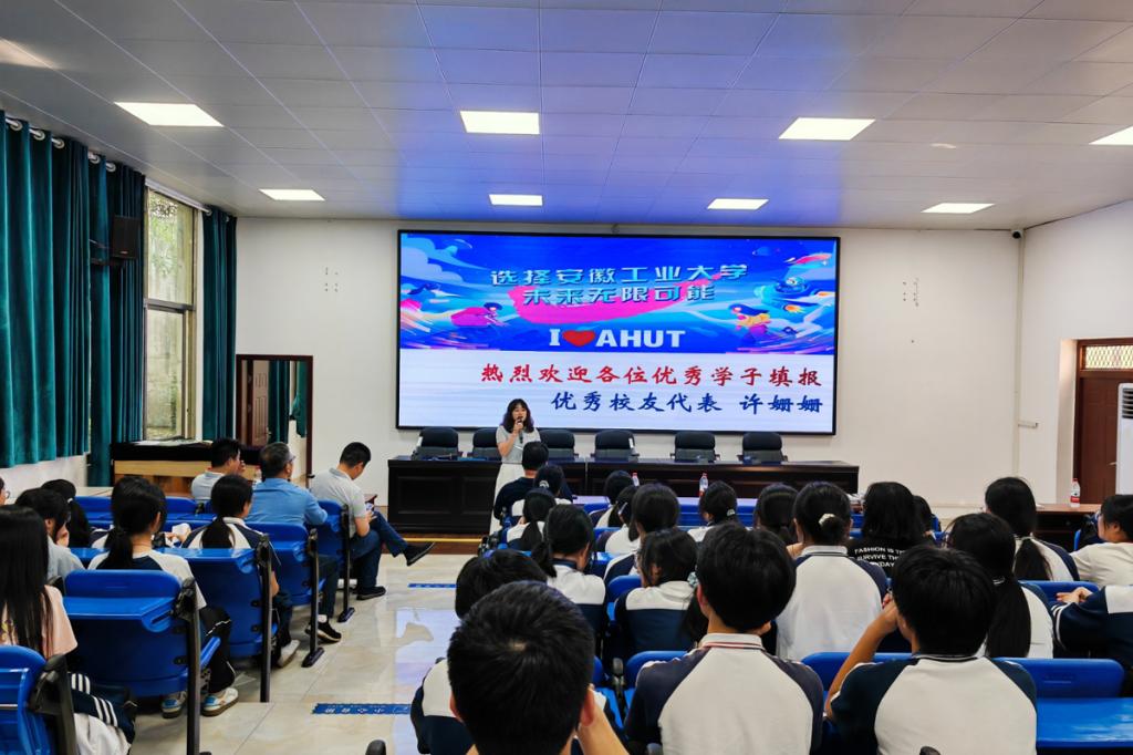 活动特邀我校优秀校友许姗姗现场分享。她以“从新安江畔到马鞍山下”为题,讲述了自己在安工大度过的四年时光,感恩母校提供的平台,不断锻炼自己、提升自己。“安工大不仅教会我专业知识,更培养了我解决问题的能力和开拓进取的品格。”真挚的发言引发共鸣,台下学子纷纷表示要将安工大作为第一志愿。