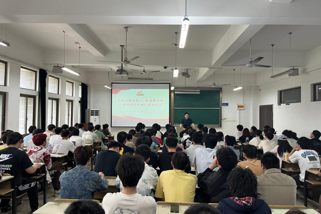 4月19日上午,机械工程学院第四十九期学生入党积极分子培训班正式开班。开班式上,学院党委书记吴文兵强调,入党积极分子培训是发展党员工作的重要环节,是确保党员发展质量的关键步骤,全体参训学员要珍惜学习机会,端正学习态度和入党动机,严守培训纪律,发挥先锋模范作用,以实际行动向党组织靠拢。随后,吴文兵为140余名入党积极分子讲授党的二十届三中全会精神专题党课。
