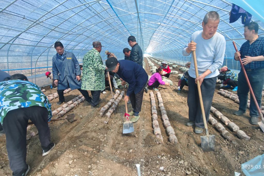 党旗飘扬:打响播种“零失误”攻坚战。3月17日,随着首批24000个菌棒运抵红光村示范农场,第一场“播种战役”打响。清晨6点,驻村工作队和村“两委”带领20余名干部、党员和村民代表,将种植区划分为“责任网格”,大家卸货、运输、播种,齐心协力,忙而不乱。“确保间距精确到厘米,覆土厚度3-5厘米。”经过技术培训的村干部手把手指导村民调整菌棒姿态。经过连续三天的奋战,24000个菌棒“零失误”高标准种植,每一次劳动都成为红光村党员干部发挥先锋模范作用的“战场”。