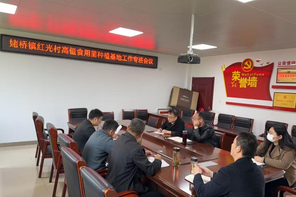 2025年,我校定点帮扶村姥桥镇红光村,将贵州红托竹荪“南种北移”,大力发展高值食用菌产业。驻村工作队与村“两委”组织党员干部冲锋一线、党建引领,我校选派干部引进农技专家资源,引才赋能、攻坚克难,围绕菌棒引种、科技种植,将组织优势转化为发展动能,积极探索“党建+产业”的振兴之路。