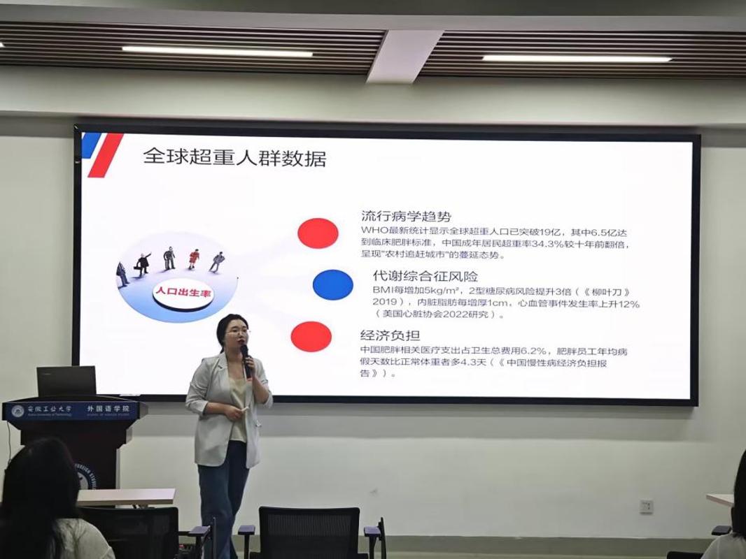 刘晓慧围绕“科学运动,健康续航”主题,从减重现状、原理、饮食、运动、生活习惯及实施保障体系等方面,讲授健康体重的重要性,以丰富的专业知识和生动的案例,为同学们深入浅出地科普了科学运动相关专业知识。她着重强调,在爱国卫生运动的大背景下,树立“科学运动 健康体重”理念的重要性。通过科学锻炼,同学们不仅能够塑造健康的体魄,有效预防疾病,为学习和生活打下坚实基础,更能在精神层面收获自信与自尊的提升,以更加积极乐观的态度面对挑战。讲座过程中,刘晓慧运用大量图文资料,结合清晰的讲解逻辑,将原本晦涩的健康知识变得通俗易懂,赢得了现场同学们的热烈掌声。