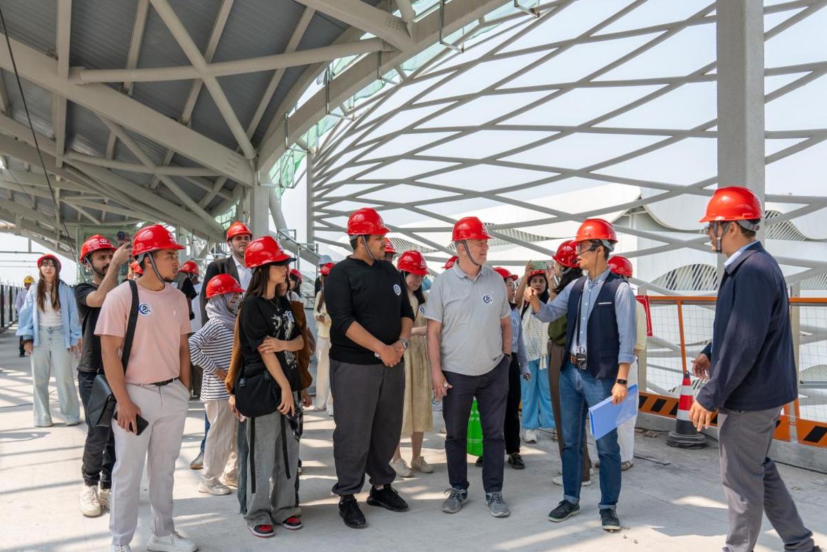 留学生首先来到宁马城际铁路九华路站。作为推动宁马同城化的重要交通枢纽,项目负责人详细介绍了线路规划、技术创新及未来运营计划。随后,留学生来到世界跨度最大的三塔斜拉桥——马鞍山公铁长江大桥施工现场。站在观景平台,建设方通过沙盘模型演示了“铁路+城市道路”双层桥面的设计亮点。参观过程中,工作人员全程提供专业讲解,并围绕留学生关注的环保措施和国际合作等话题进行交流。