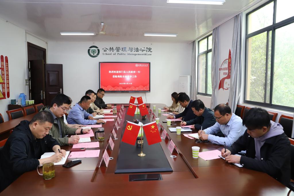 黄山市祁门县挂职副县长、安徽工业大学公共管理与法学院副院长(主持行政工作)杨哲带领祁门县文旅体育局局长叶华芬、祁门县人社局局长赵统辉、祁门县安凌镇镇长胡旺晖、祁门县大坦乡乡长黄琳、祁门县人民政府办公室工作人员朱陆平等一行近日到公共管理与法学院调研交流。学院领导班子成员,各系主任参加调研座谈会,学院党委书记胡正友主持会议。