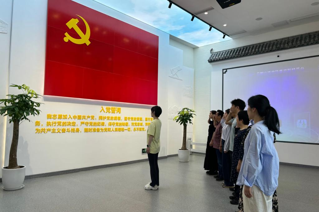 以“江碧映山青 莲洁润诗城”为主题,党员们依次参观了“咬定青山不放松”“恶竹应须斩万竿”“只留清气满乾坤”“绝知此事要躬行”等四个主题篇章,全面系统地回顾了历史上全面从严治党的重要举措,特别是党的十八大以来反腐败斗争的辉煌成就。在“声、光、电”互动式展现手段的辅助下,党员们沉浸式地感受腐败行为对党和国家、对人民以及对个人造成的严重危害,要自觉对照反思、引以为戒。最后,全体党员干部来到宣誓区,面对鲜红的党旗,庄严地举起右拳,重温入党誓词。铿锵有力的誓言在宣誓区回荡,传递出党员们对党忠诚和严守廉洁自律的坚定信念。