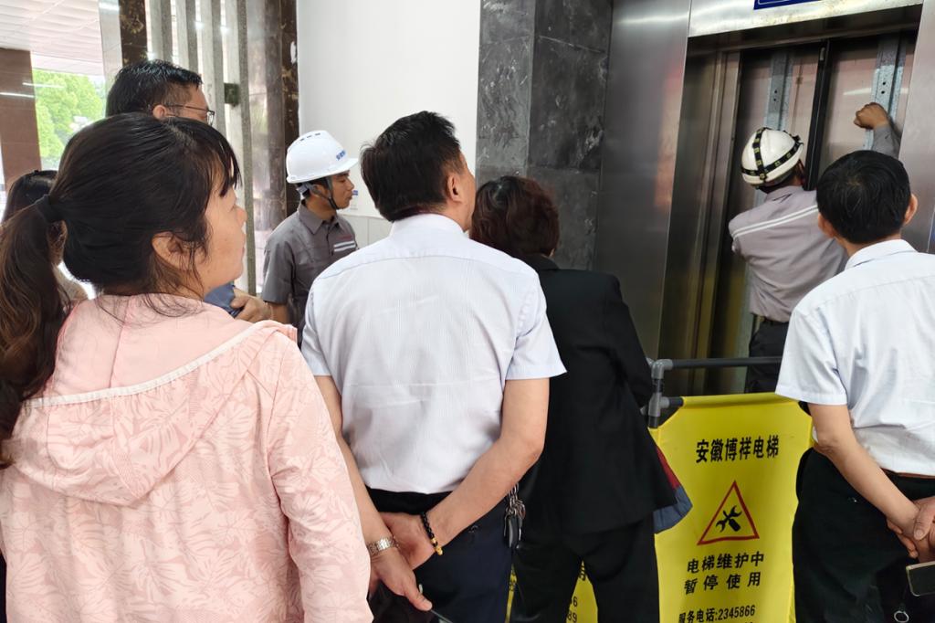 后勤处相关部门负责人介绍了演练方案,电梯维保服务企业讲解了电梯安全知识;随后,现场开展了电梯困人应急救援演练。