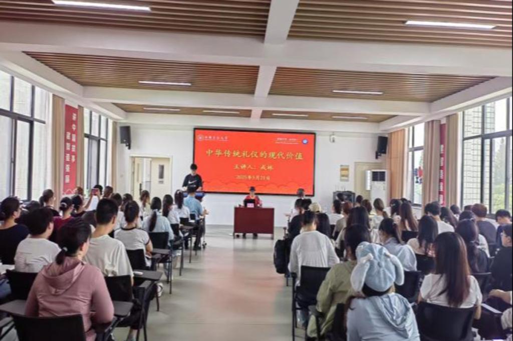 为培育学生有文明、讲诚信、懂感恩的意识和情怀,切实推进以文化人,以礼育人,5月21日下午,外国语学院在教一401报告厅举办“中华传统礼仪的现代价值”专题讲座,特邀“五老”代表、著名作家、中国作家协会会员、马鞍山市政府文化顾问戎林主讲,学院党委书记王成勇,党委副书记、纪委书记、副院长施铜兴和各年级学生代表参加此次讲座。讲座由院团委书记卜齐春主持。