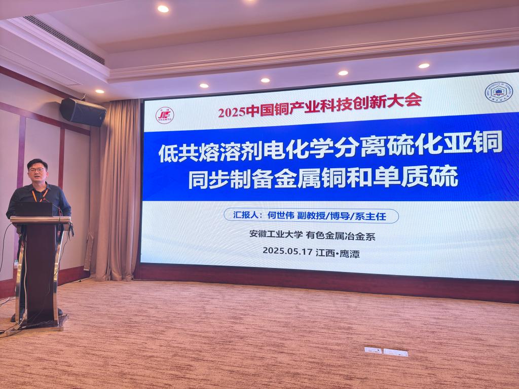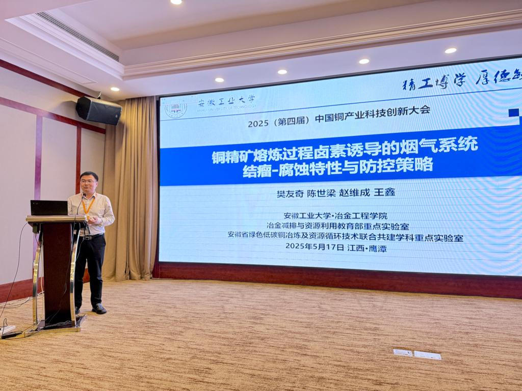 5月16至18日,由中国有色金属学会、江西铜业集团有限公司共同主办的“2025(第四届)中国铜产业科技创新大会”在江西鹰潭召开。鹰潭市人民政府市长王亚青、江铜集团党委书记郑高清等领导致辞讲话。中国工程院王国栋院士、段宁院士等专家学者围绕铜产业创新发展作了大会特邀报告。冶金工程学院有色金属冶金系樊友奇教授、何世伟主任、陈世梁副主任等师生代表参加。